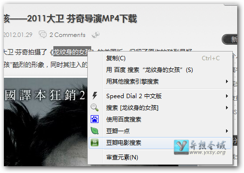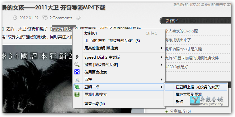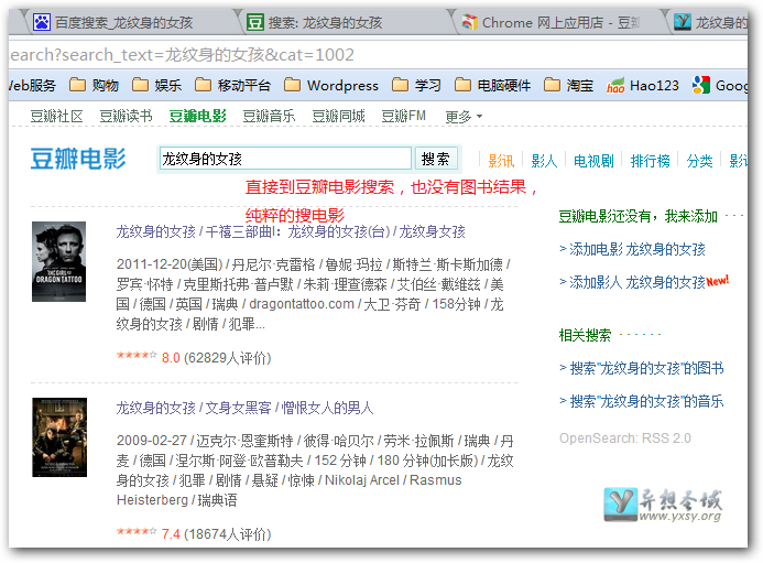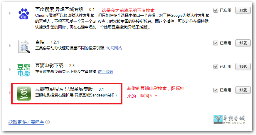 Sandeepin最近狂看电影,自然少不了上豆瓣看看电影介绍短评顺便自己也吐吐槽,为了方便自己自己搜电影,在google商店找了几款右键豆瓣电影搜索的软件都不理想,比如这款“豆瓣一点”,的确可搜索,但进入的是综合搜索,但Sandeepin只对豆瓣电影的内容感兴趣啊,而且又没有设置选项只搜豆瓣电影,到头来还要在豆瓣网站上又重新点搜索电影,岂不麻烦?我试了几款同类软件,效果都不理想,没办法,还是老话说的好,自己动手丰衣足食,于是捣鼓了这款豆瓣电影搜索Chrome插件。