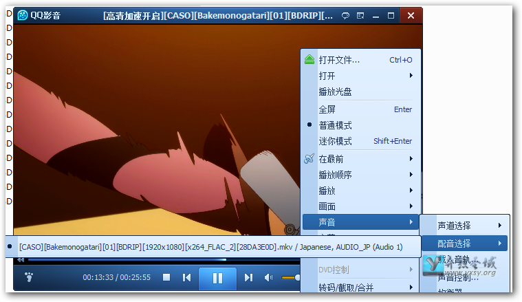 不过最近用QQ影音则出现让我用着不适的地方。当然也不完全怪QQ影音,文件本身做得也不标准。我最近看的一部动画《化物语》,它采用了副音轨的形式增添了一些解说,然而QQ影音却读不出副音轨,PotPlayer则能正常读出。我也搞不清楚副音轨到底是什么,如果说就是类似多国语言的mkv那样多条音轨,切换就能换成不同国的语言,那读不出就是QQ影音的Bug了,如果不是这样,副音轨用的是另一种标准,读不出也只能说明QQ影音不强大。毕竟文件不标准不是理由,文件又不专门为哪个播放器做,其它播放器能识别也算它的本事,兼容性做得好。
