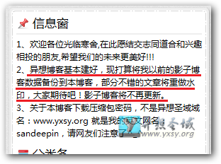 于是早有打算,策划建立异想圣域。新的异想博客也将原来在影子博客的部分好文转了回来,我在博客的信息窗有说明,我说是好文,其实是自己喜欢的,也是自己的美好回忆。从异想博客建立那时起,影子博客也就不更新了,放在那儿不管它,不过耗到了今天,影子圣域域名yzsy.org到期,你不管它它也要消失,而我也不想多花钱再租这域名,过期就随它过期吧,于是有了今天这篇文章——向“影子圣域”正式告别。
