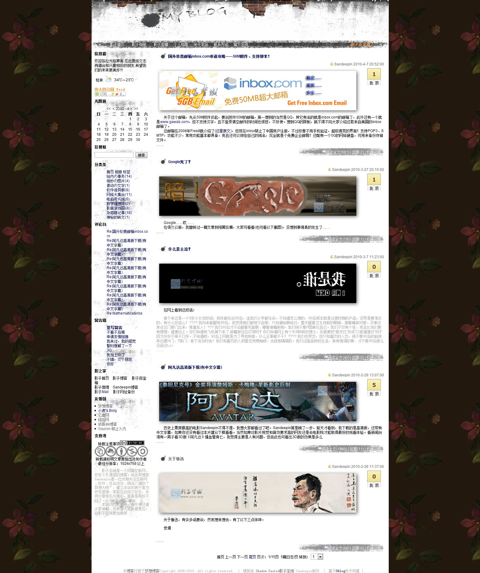 特此截图两张做纪念(一张影子圣域首页,一张影子博客首页):