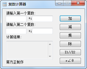恰好这学期学了复变函数,自己也自学了C#,于是用C#写了这个复数计算器,它也是我的第一个C#程序。功能很简单,就是复数的常用计算,主要为了方便自己,没什么技术含量。目前功能也不强,容错也没做,不过我会继续完善这个小程序的,欢迎大家试用,提出宝贵意见!