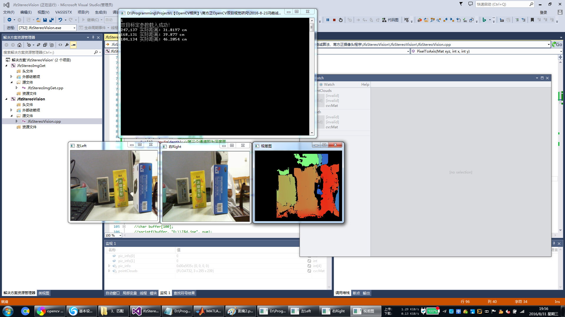 JfzStereoVision:用于载入相机参数,从而进行匹配测距,生成相机参数的模块没做,直接用了邹宇华的上位机进行生成,在此非常感谢邹老师。