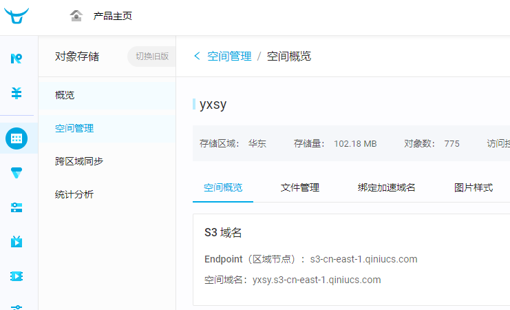 我的对象存储是华东的,所以按图上的填:s3-cn-east-1.qiniucs.com