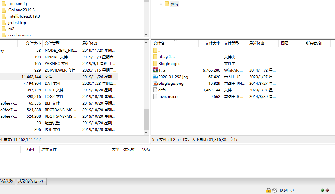 之后就可以连进去看文件了,由于我配置的是yxsy这块空间的Key,所以只能访问这个空间下的东西: