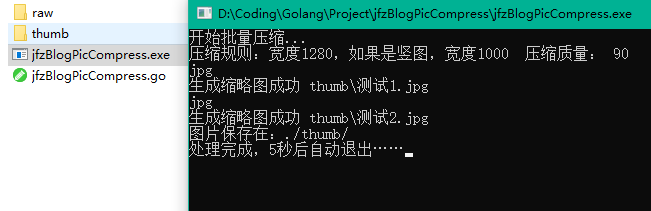 原图放在当前目录下的raw目录中,压缩后的图片生成在thumb目录下,运行生成的二进制文件即可,压缩完5s后程序退出。