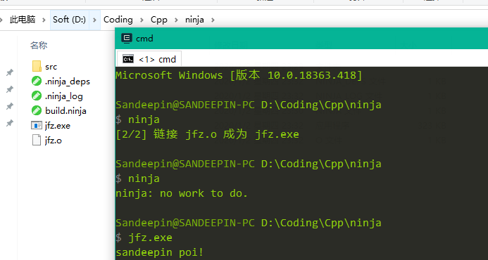 如果我让输出文件和任务名不一样,ninja每次都会重新编译: