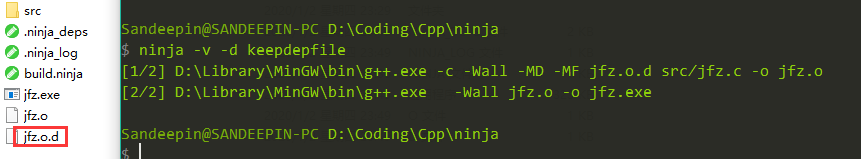 keepdepfile don't delete depfiles after they're read by ninja 读取depfile后,不删除它
