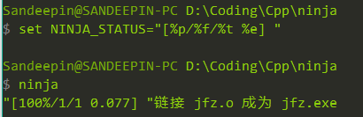 尝试改为export NINJA_STATUS="[%p/%f/%t %e] “(Windows下set NINJA_STATUS=”[%p/%f/%t %e] “)的效果如下:
